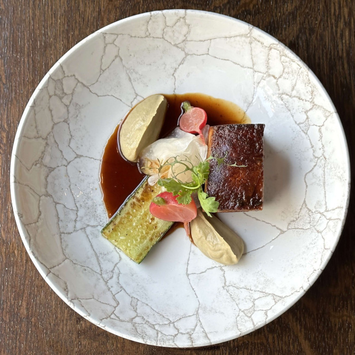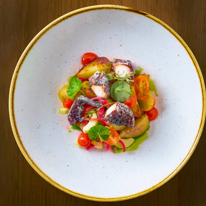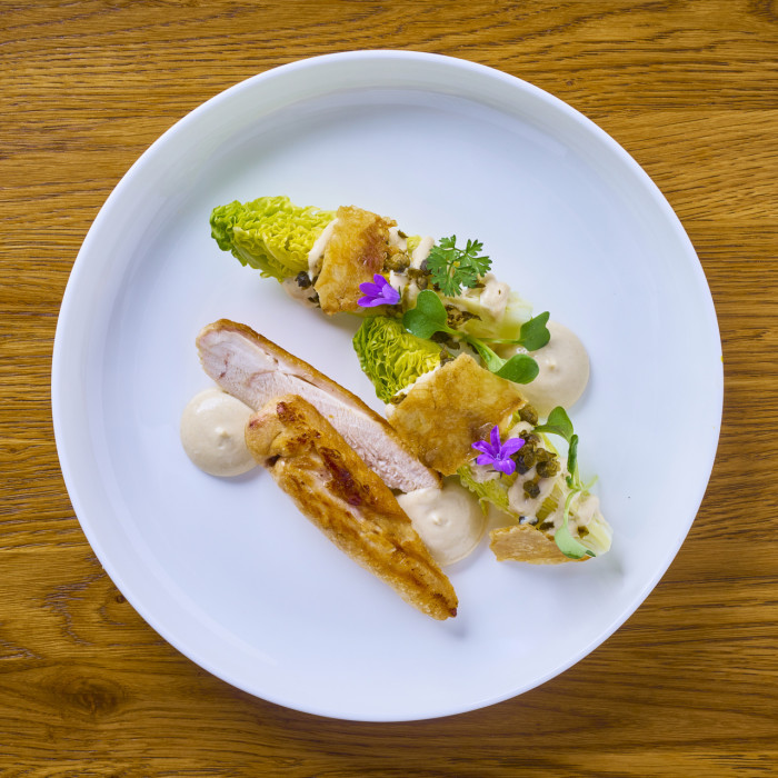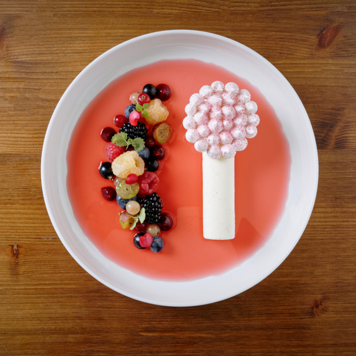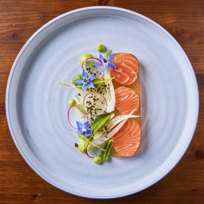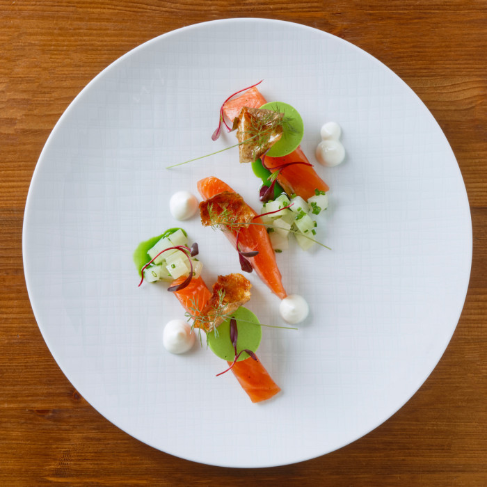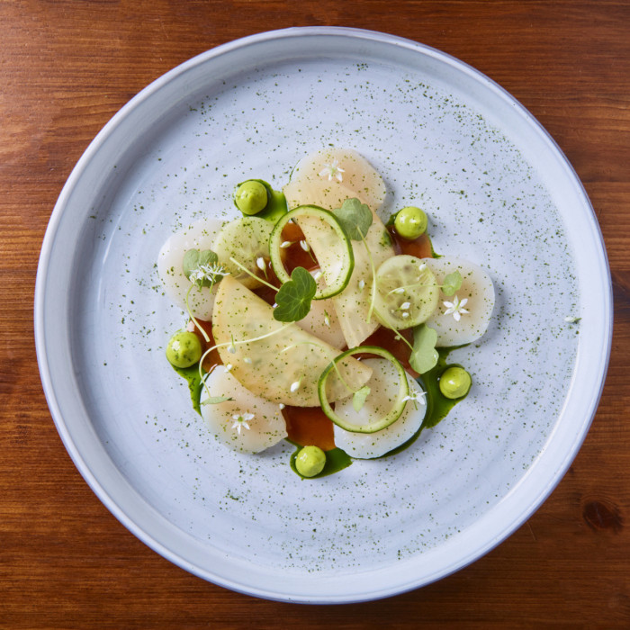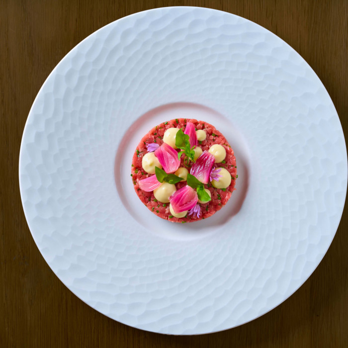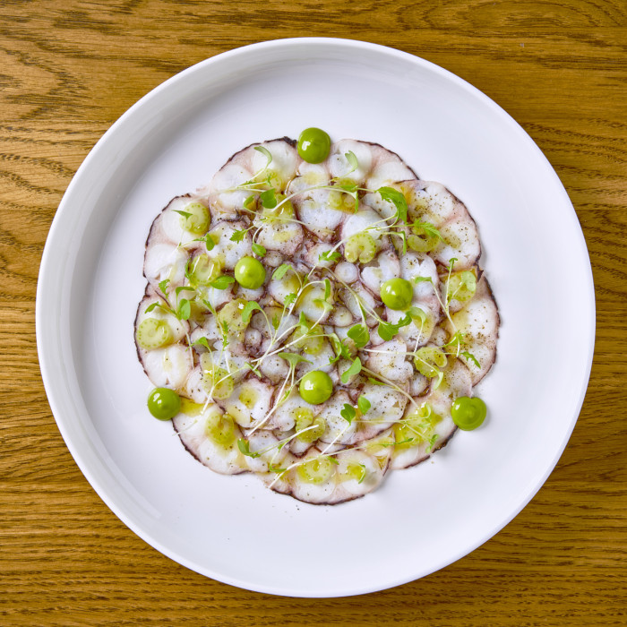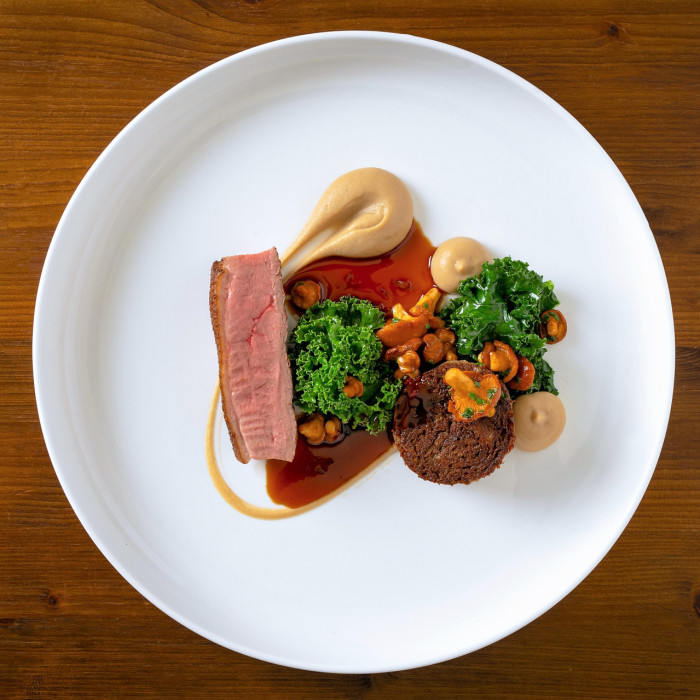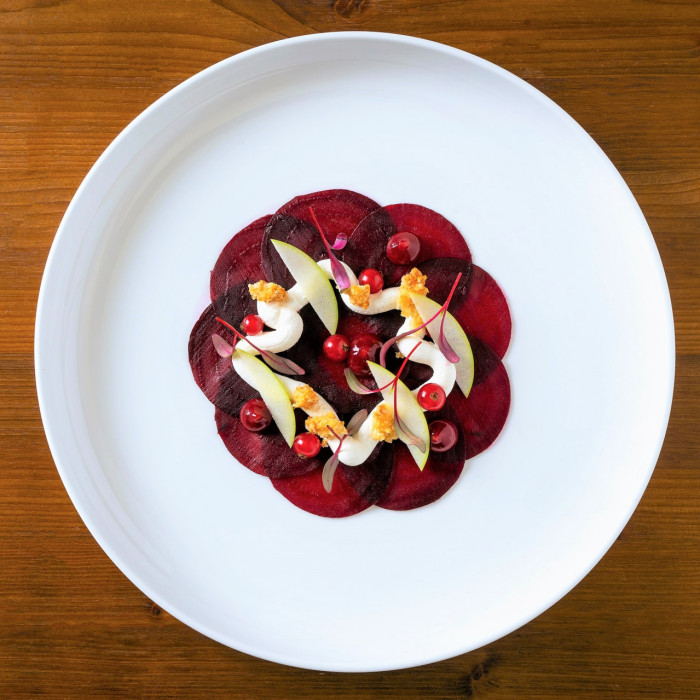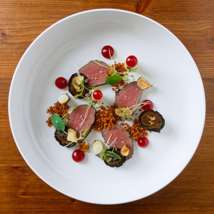 Tenké plátky syrového dančího hřbetu, marinované houby, lanýžový krém a rozmarýnový olej Předkrmy Recepty
